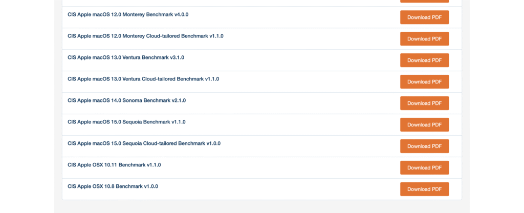 Compliance benchmarks are specific recommendation or rules concerning security of a device. In this simple lab, I would like to use Jamf Compliance Editor to import them into Jamf Pro. The compliance pdf is in CIS website ready for download in case I need to review that.