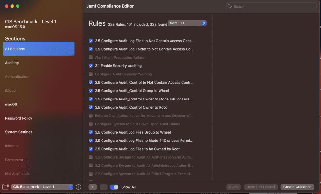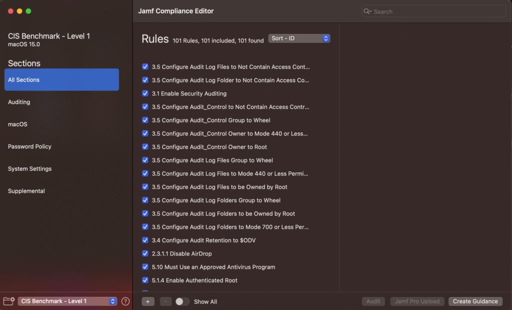 Next, I am going to get Jamf Compliance Editor. Suppose my supervisor said to comply all devices with Level 1 compliance of CIS.