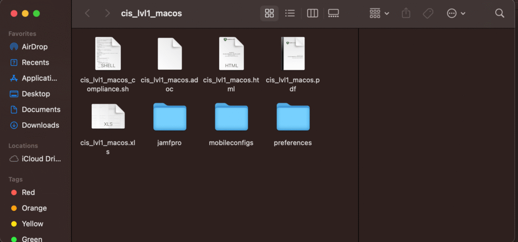 There is a pdf file containing my chosen security rules. To upload this security guideline to Jamf Pro, I simply need to click “Upload to Jamf Pro” button. As for other device management solution, I need to do it manually. In Jamf Pro, it would under Computers -> Configuration Files. The scripts are now ready to be scoped and deployed. In Jamf Protect, this would be under Compliance -> Baseline. The access to Jamf Pro and Jamf Protect are given by an employer and are not available for me at the time of writing.